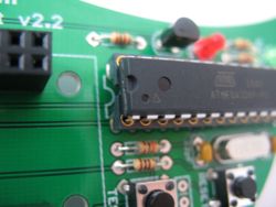 You are now ready to insert the microcontroller into its socket. If its legs are spread too far apart for them to fit into the socket, use a flat surface to help bend them to a 90º angle.