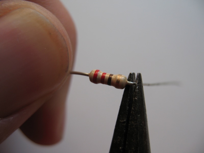 Repeat for the other leg. Once both legs are soldered, take your small snips and snip the resistor leg just above the solder.