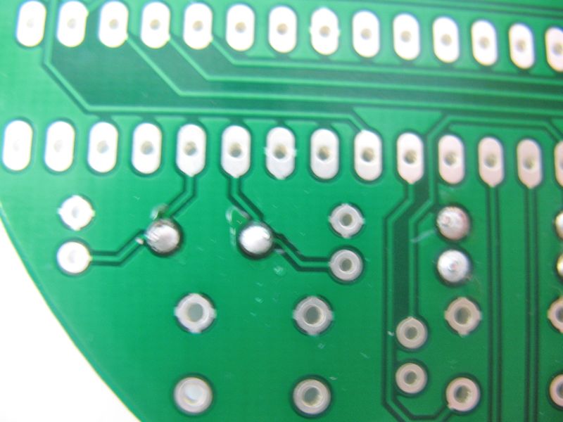 Flip the board. At first, solder only the two pins on opposing corners to secure the socket in place.