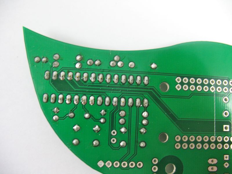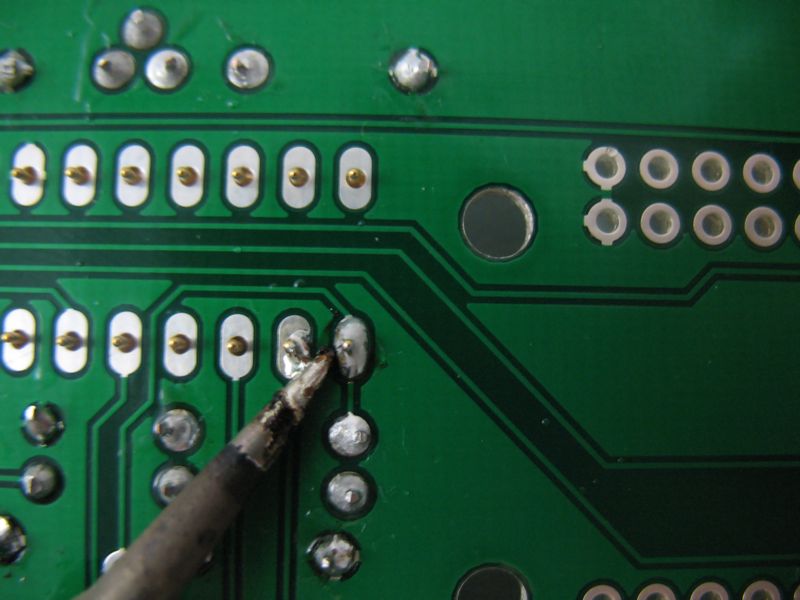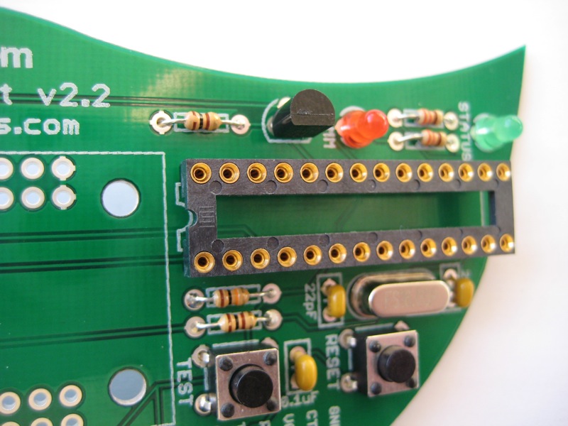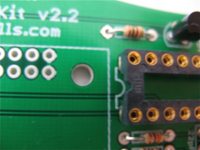 Check to make sure that the socket is seated flush on the board. If it’s not, reheat your solders and push the socket it. Once it’s positioned correctly, solder all of the remaining pins.