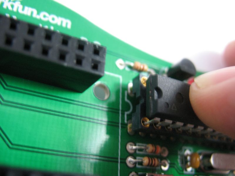 Gently press the chip all the way into place, taking care to not bend any of the legs.